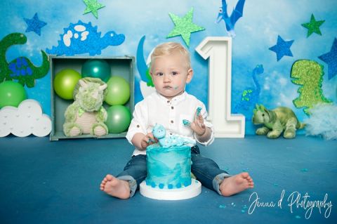 In the world of photography, it’s a rare joy to come across clients who trust your creative vision wholeheartedly. Jenna D Photography recently had the pleasure of working with one such client, Alichia, who had a unique and delightful request – a cute dinosaur-themed cake smash session for her son, Alexander. This blog post is a tribute to the wonderful world of creativity, trust, and a sweet little boy’s adventurous cake smash.
