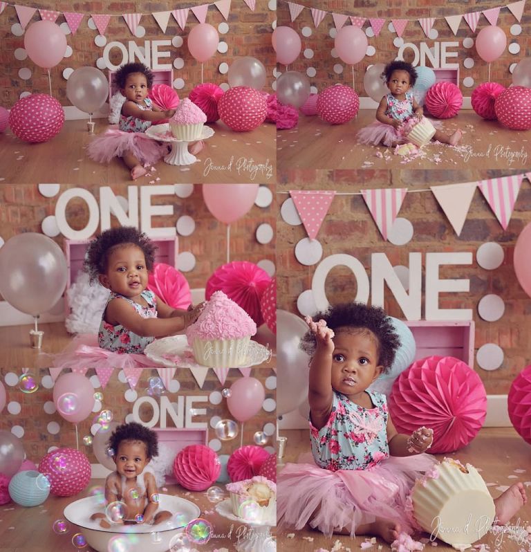 This little girl was so friendly from when they walked in the studio right to the end of her bubble bath. Naledi gorgeous in the little mint and pink and outfit mommy brought with. Not afraid of getting dirty this little one, Nope she was bashing and smashing her pink giant cupcake like a pro.
