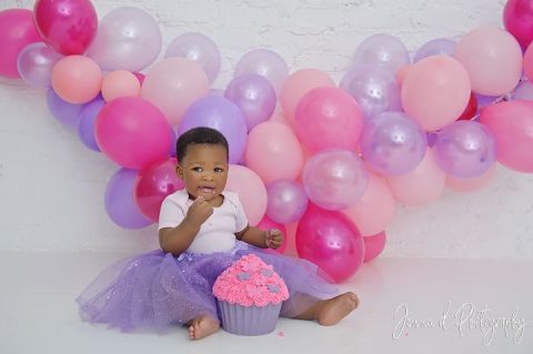 Reipela turned one and mom decided on a pink an purple cake smash photo shoot for her.