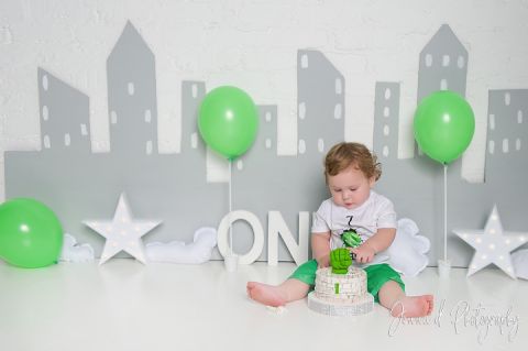 White and Green Hulk super hero cake smash photo shoot