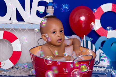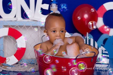 This is little Tlotlehang’s nautical cake smash.