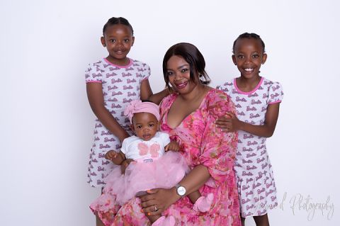 Mommy Mmabatho had an ingenious idea for the setup – a hot pink Barbie theme! Pink, glitzy, and oh-so-magical, the studio transformed into a Barbie dream world, a little girl’s fantasy brought to life. The backdrop, the decorations, and the outfits all screamed “Barbie,” creating the perfect stage for this sweet celebration