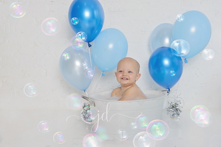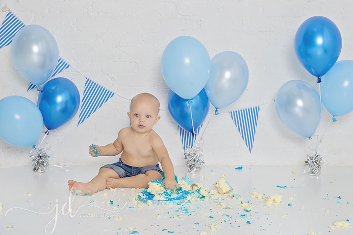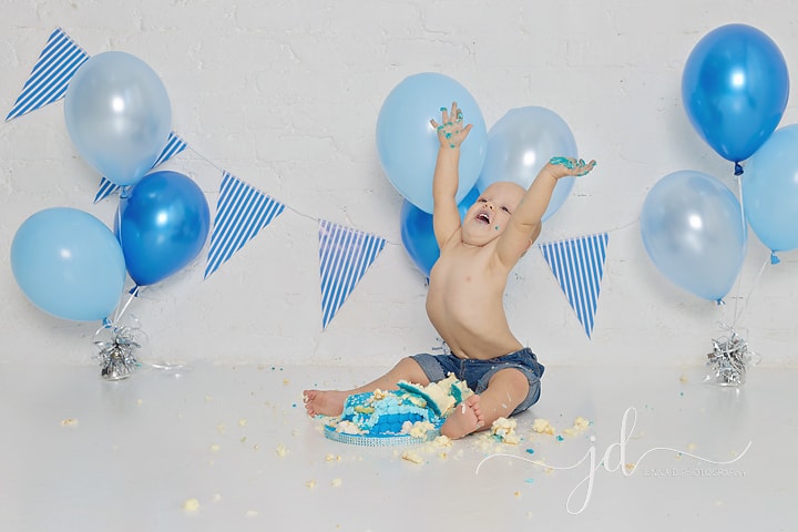 The centerpiece of Murphy’s photoshoot was, of course, the cake smash. With frosting and sprinkles galore, Murphy dived into the sugary delight with gusto. Every swipe, every giggle, and every frosting-covered smile became a snapshot of the sheer delight that comes with being a carefree little one. Jenna D Photography expertly captured the messy, magical moments as Murphy reveled in the joy of smashing his cake.