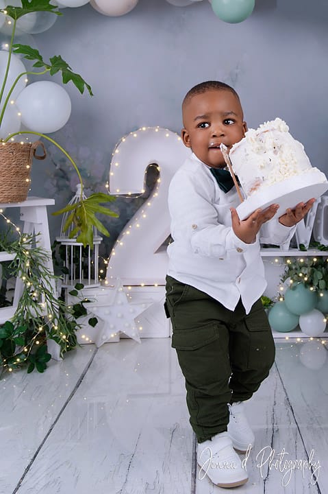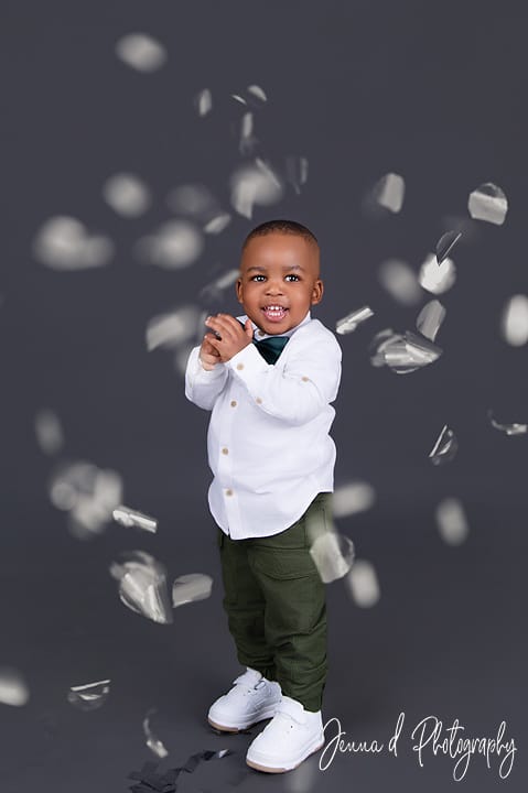 Like most two-year-olds, Siphephelo wasn’t interested in sitting still for too long. Instead, he explored, played, and got messy — which is exactly how it should be at this age. Confetti, balloons, and cake crumbs ended up everywhere. By the end of the session, the studio was filled with laughter… and glitter!